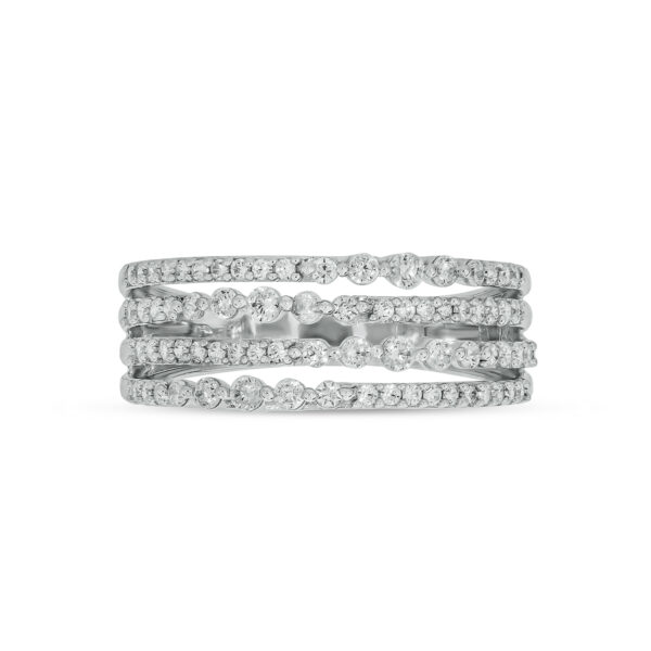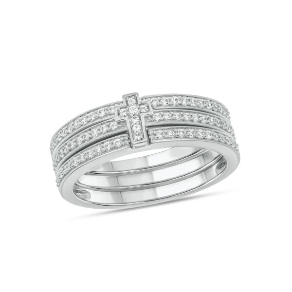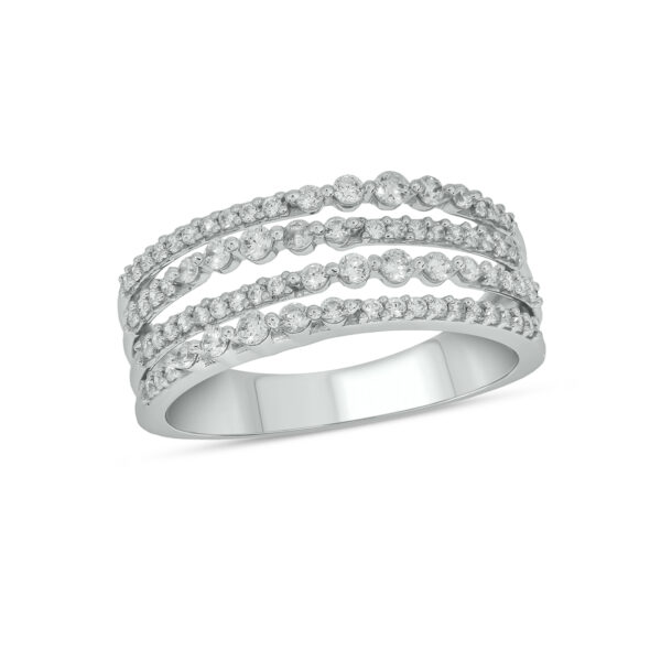 - Design: Three-Row Diamond Band with Distinct Central Row