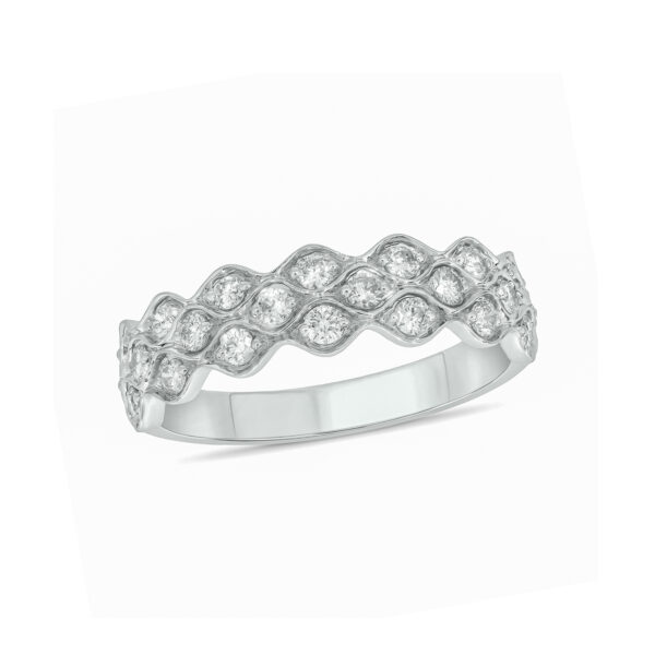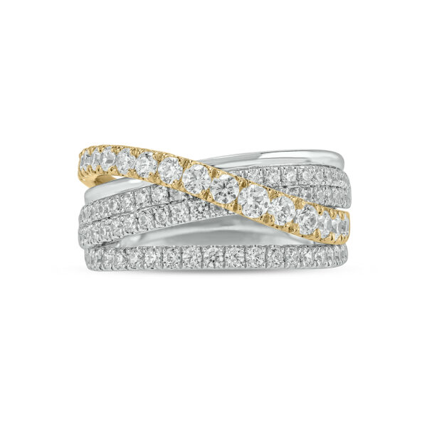 - Design: Dual Diamond Rows and Central Polished Gold Channel