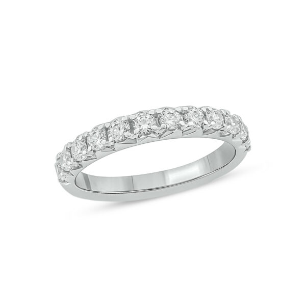 Experience the pure, unadulterated brilliance of our Illumina Band. This exquisite ring is meticulously crafted in radiant 14k gold, designed to showcase a continuous line of dazzling round diamonds. Each diamond is expertly set in a contemporary shared-prong (or U-prong) style, allowing an exceptional amount of light to enter and reflect, creating an unparalleled, ‘illuminated’ sparkle.