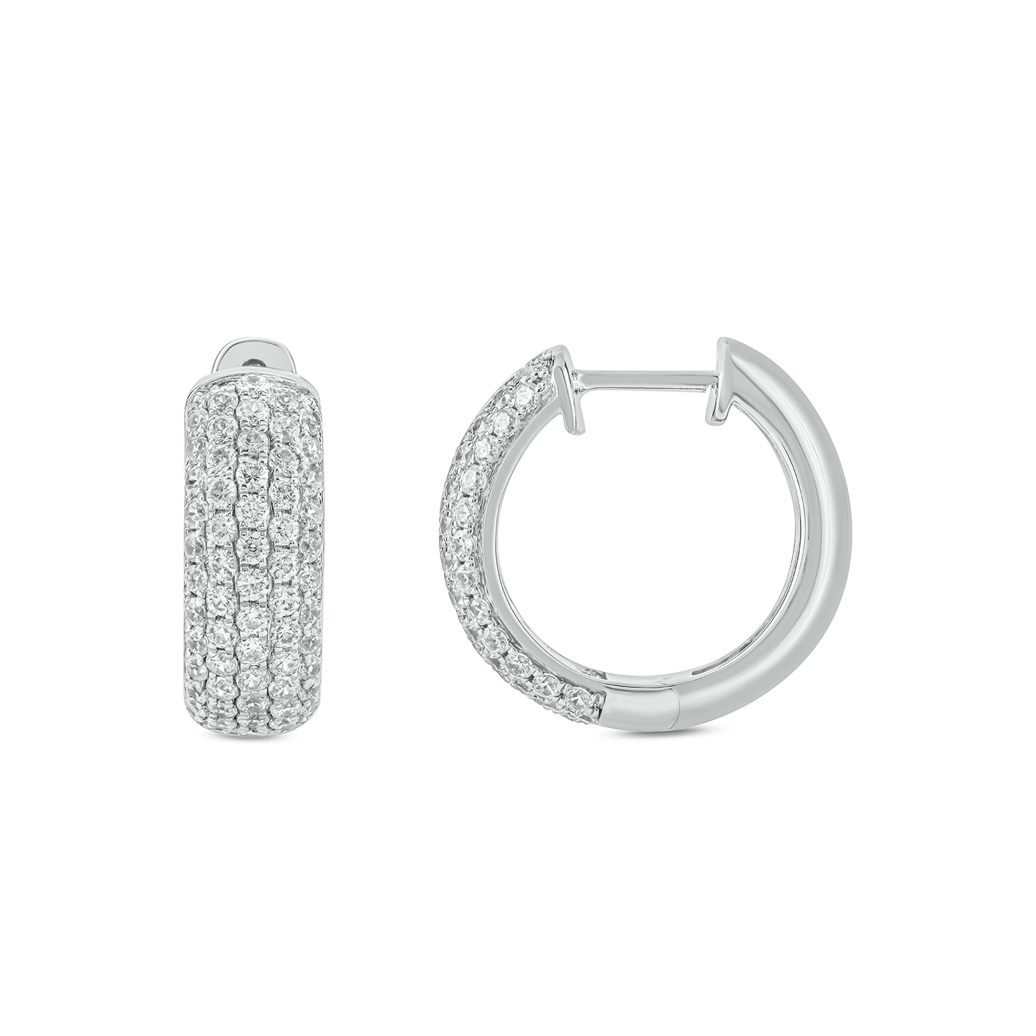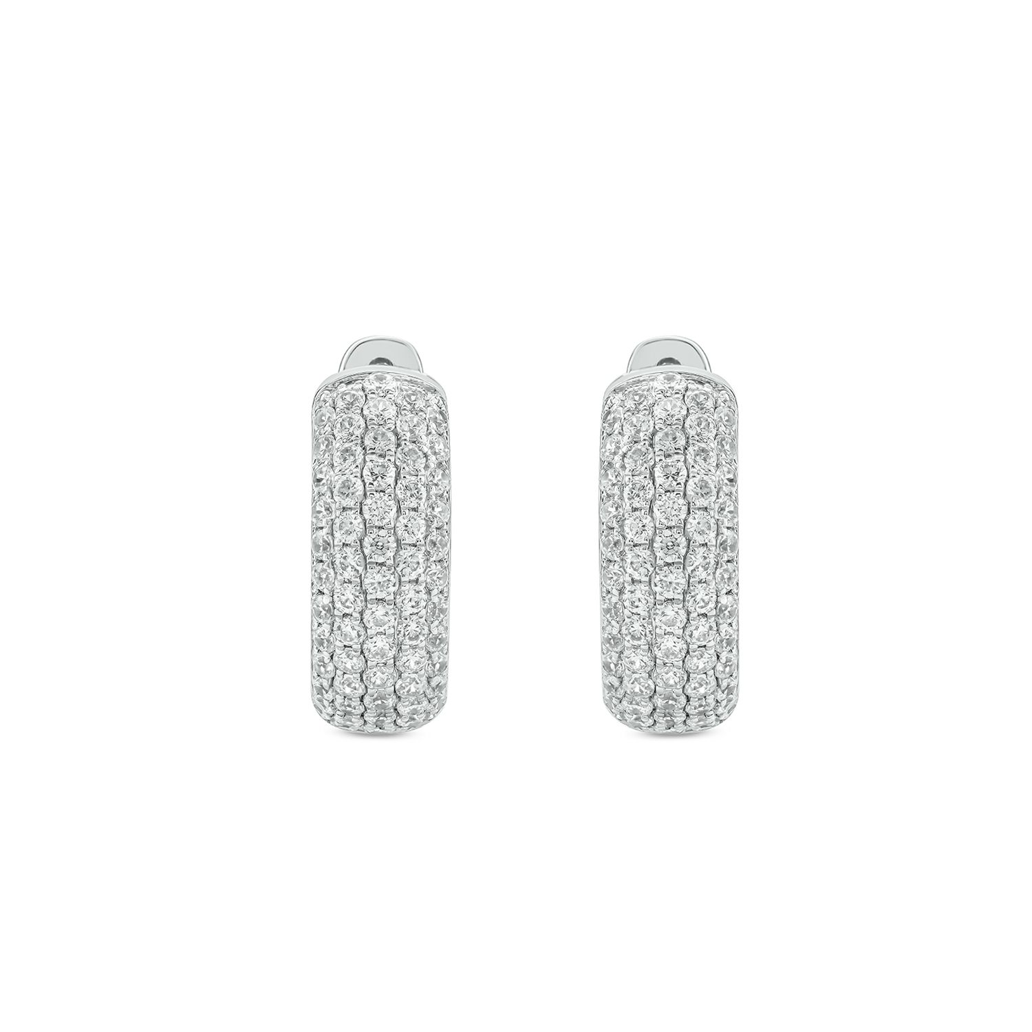 Step into sophisticated sparkle with our stunning Linear Hoops. These contemporary earrings feature a distinct, flattened profile adorned with multiple parallel rows of brilliant diamonds, creating a captivating visual texture.