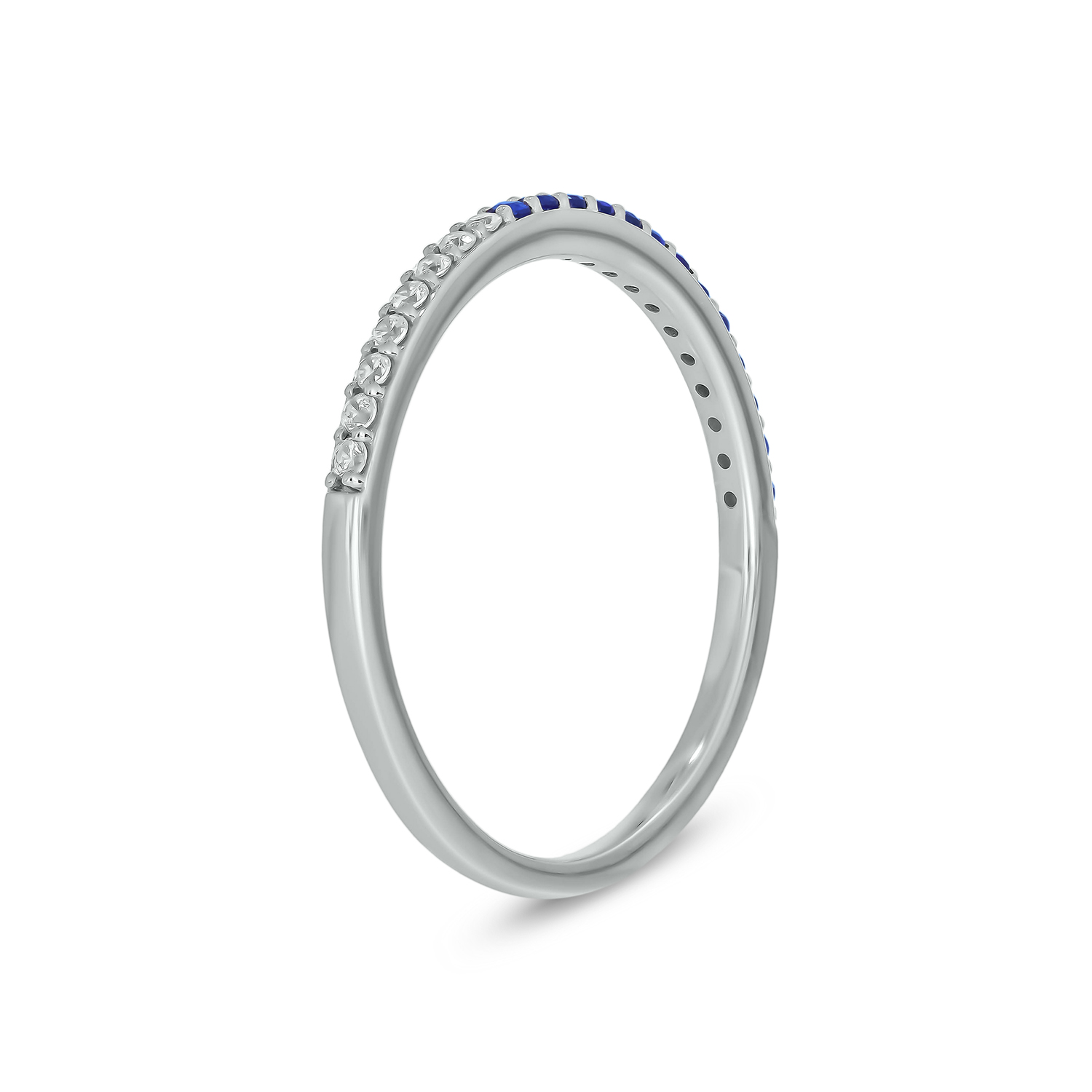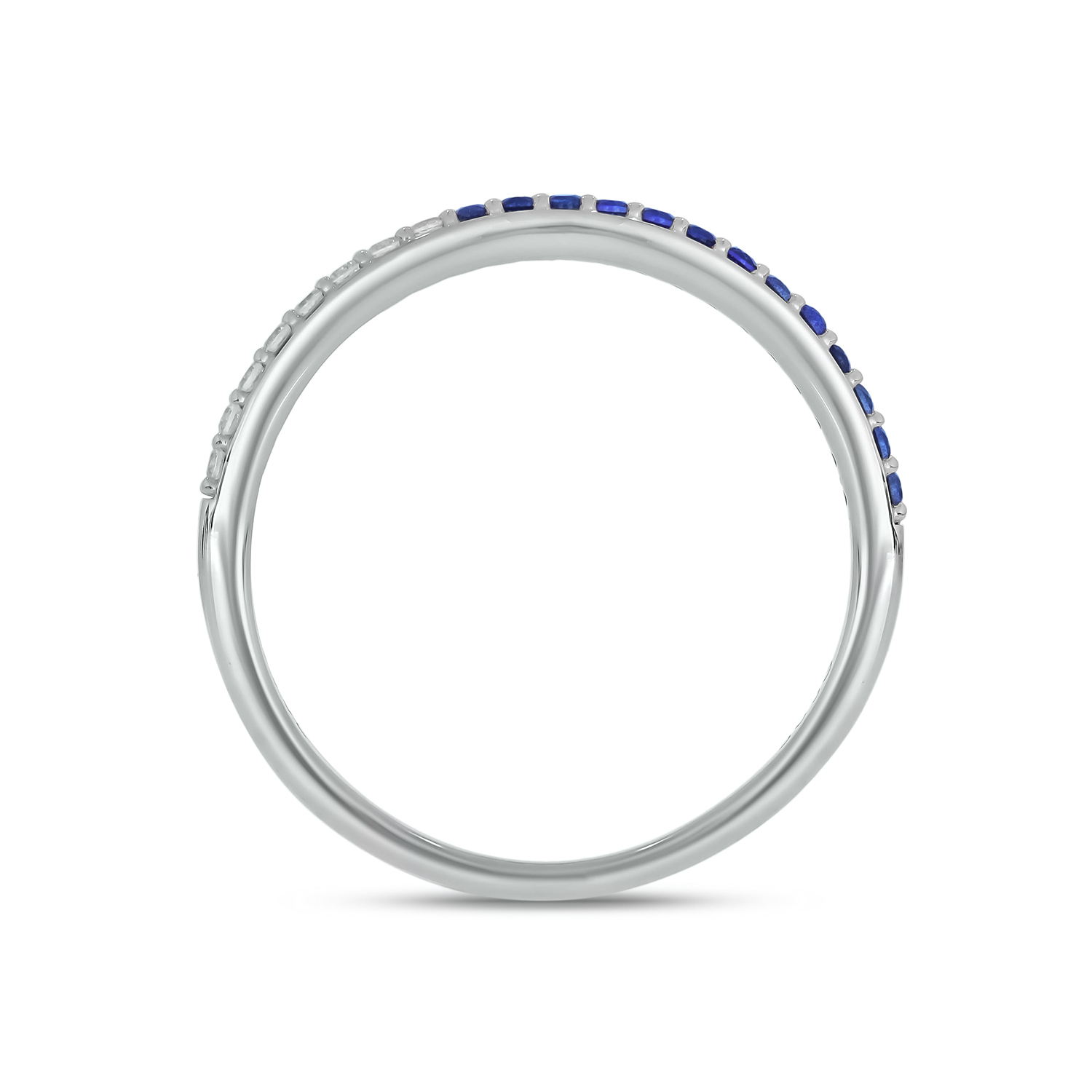 - Design: Half Diamond, Half Blue Sapphire Curved Band